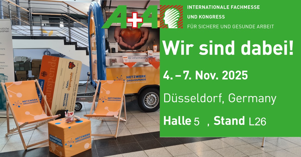 Vier Tage voller Gespräche, Begegnungen und engagierter Aufklärungsarbeit: Das Netzwerk Organspende NRW e.V. war mit seinen Patinnen und Paten auf der diesjährigen A+A Messe in Düsseldorf vertreten – der weltweit größten Fachmesse für Arbeitsschutz, Sicherheit und Gesundheit bei der Arbeit.