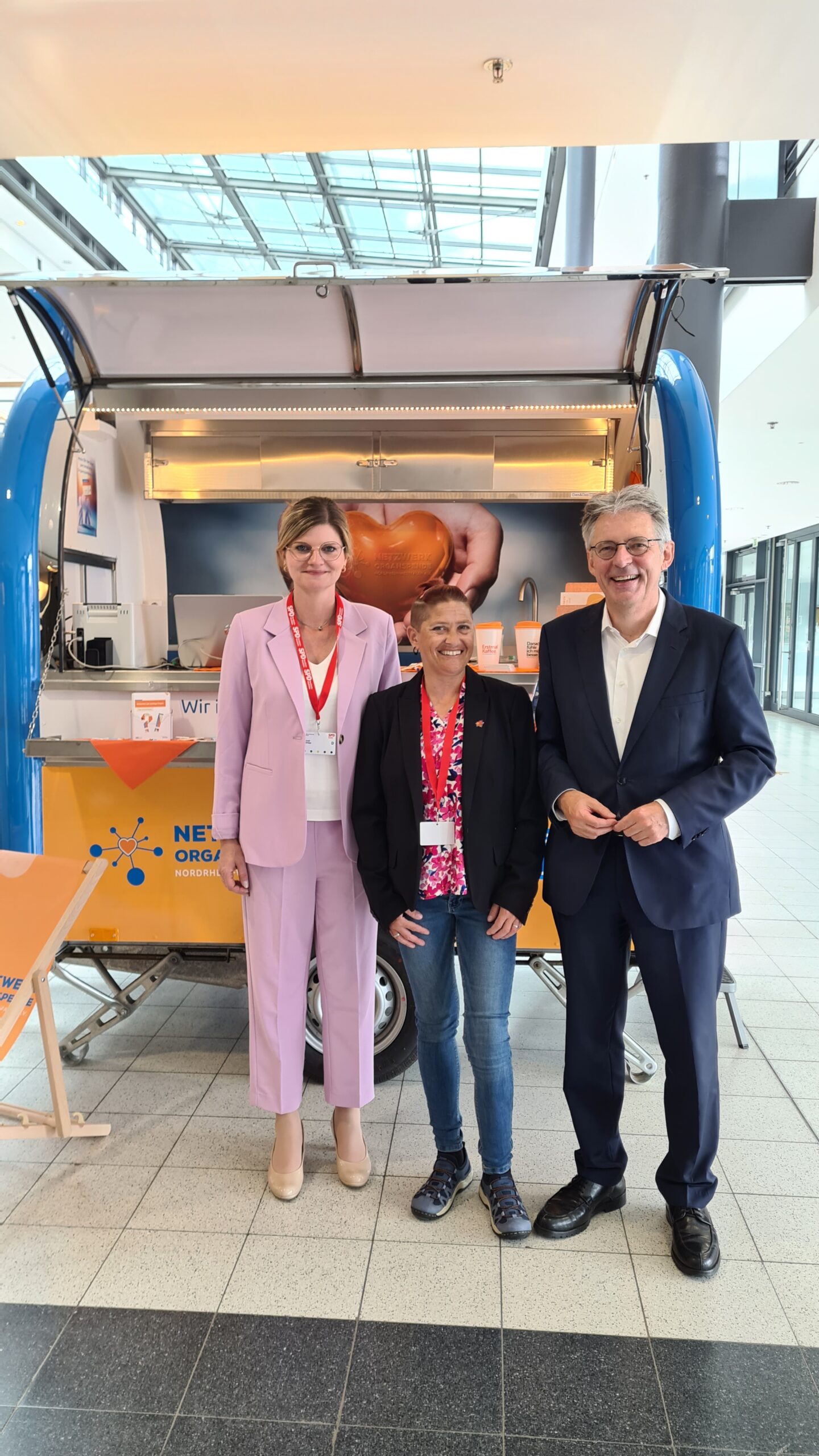 Am 26. August 2023 fand in der Halle Münsterland in Münster der Parteitag der nordrhein-westfälischen NRW statt. Für das Netzwerk Organspende NRW waren Geschäftsführerin Konstanze Birkner und Patin für Organspende und ehemaliges Vorstandsmitglied Claudia Krogul vor Ort und präsentierten die Arbeit des Netzwerkes. In diesem Jahr waren wir mit unserem neuen Organspende-Anhänger OS-Car vor Ort, der viel Aufmerksamkeit erregte. Viele wichtige Gespräche mit den Delegierten, Landtags- wie auch Bundestagsabgeordneten konnten geführt werden.